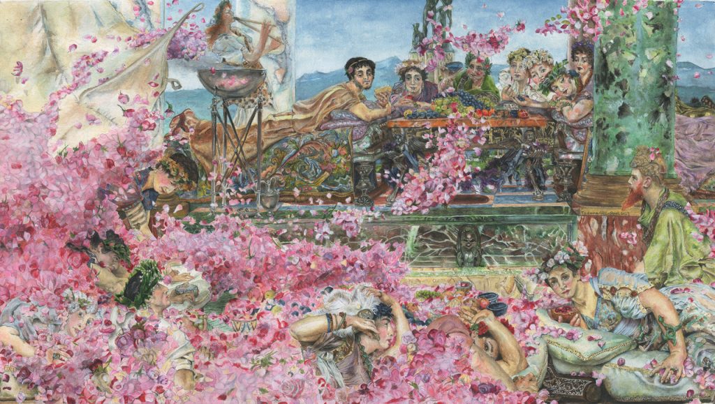 Sabine Roidl, Kopie der Rosen des Heliogabalus, Aquarell, 50 x 28 cm, 2023